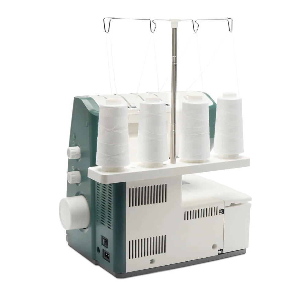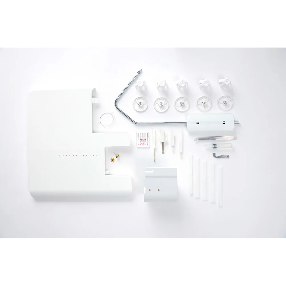 Nauti yhden painalluksen ilmalangoituksesta, 5/4/3/2-langan ompeluvalmiudesta, 23 ompeleesta. Koneessa on vakiovarusteena lisätaso, neulanlangoitin ja täydelliset ompelutulokset takaava säädettävä differentiaalisyöttö. Pääset alkuun 18 mukana tulevalla tarvikkeella.