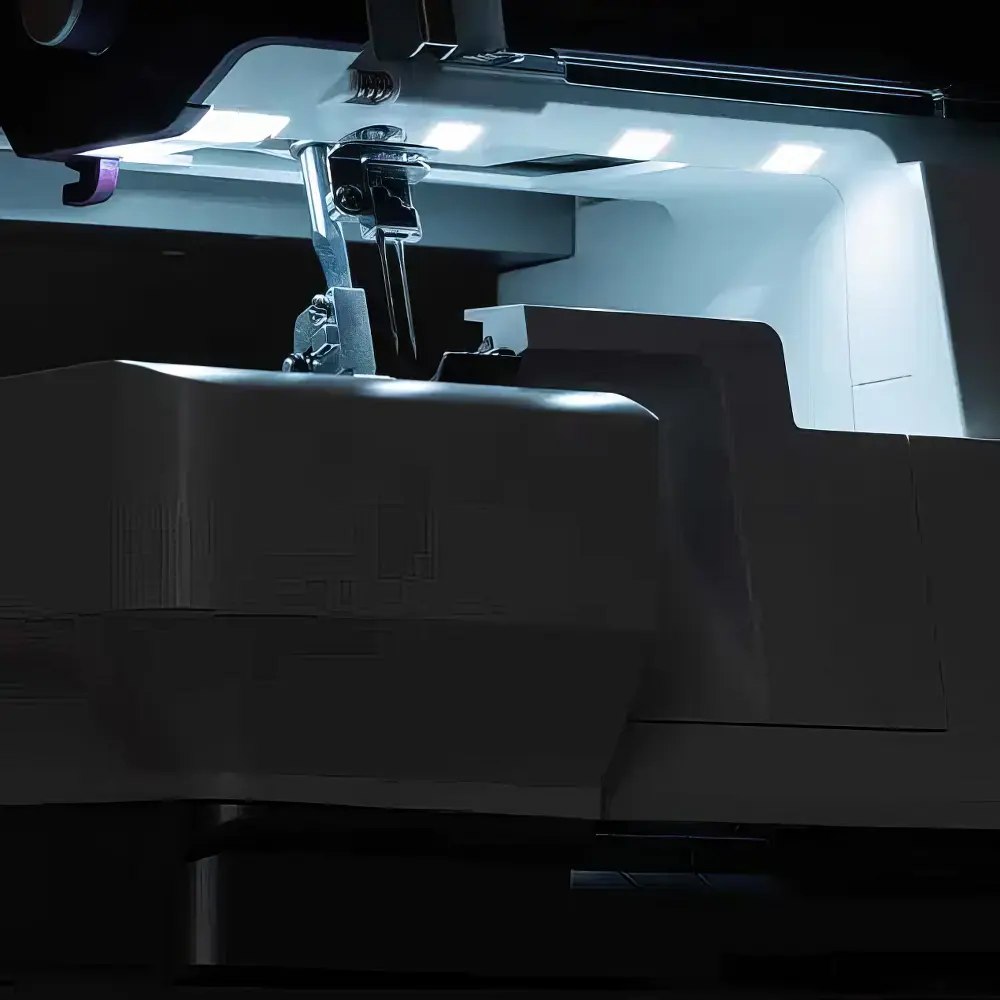 Ompelualueen poikkeuksellinen valaistus takaa optimaalisen näkyvyyden – 60 % kirkkaampi kuin kilpailijalla.*