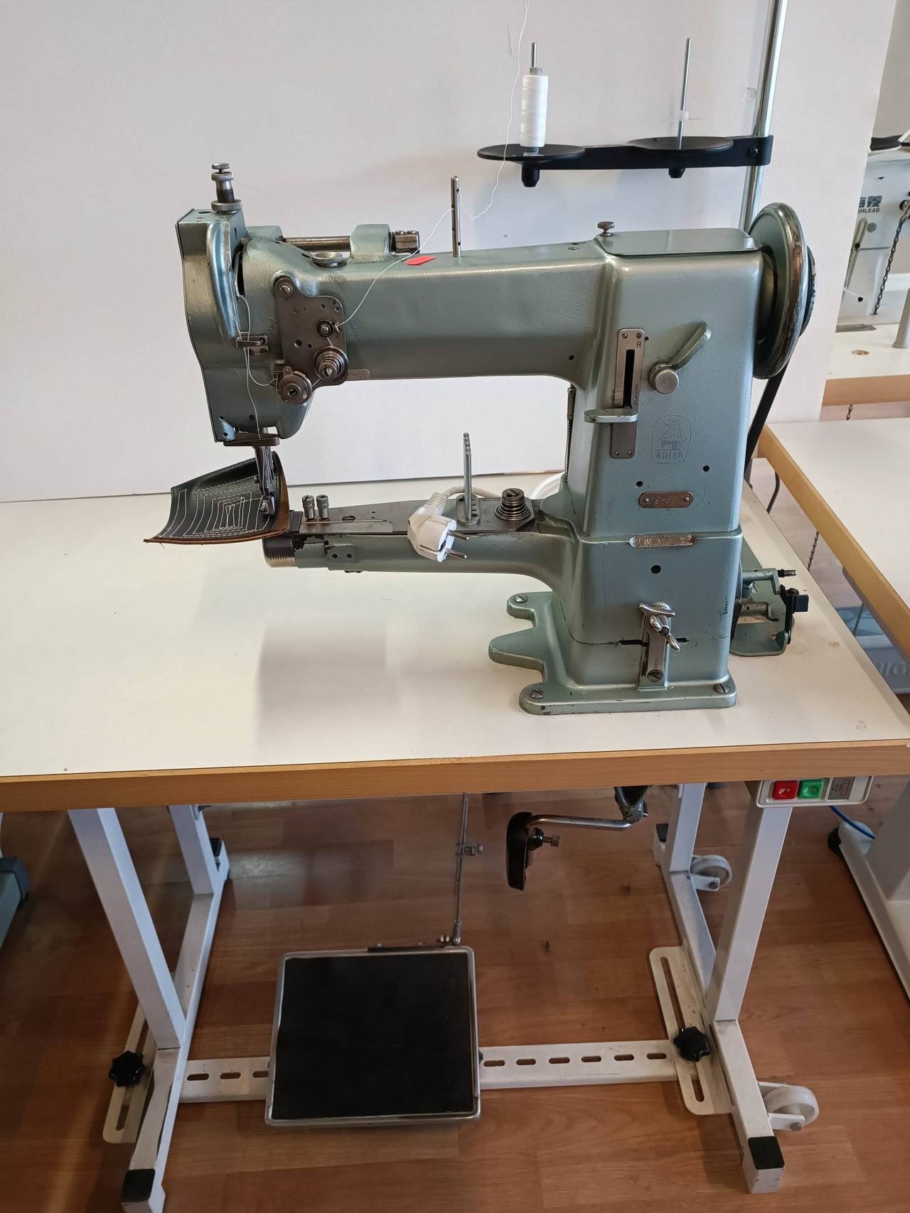 The free arm sewing machine is used to sew tubular parts such as trouser legs, cuffs, sleeves, etc.