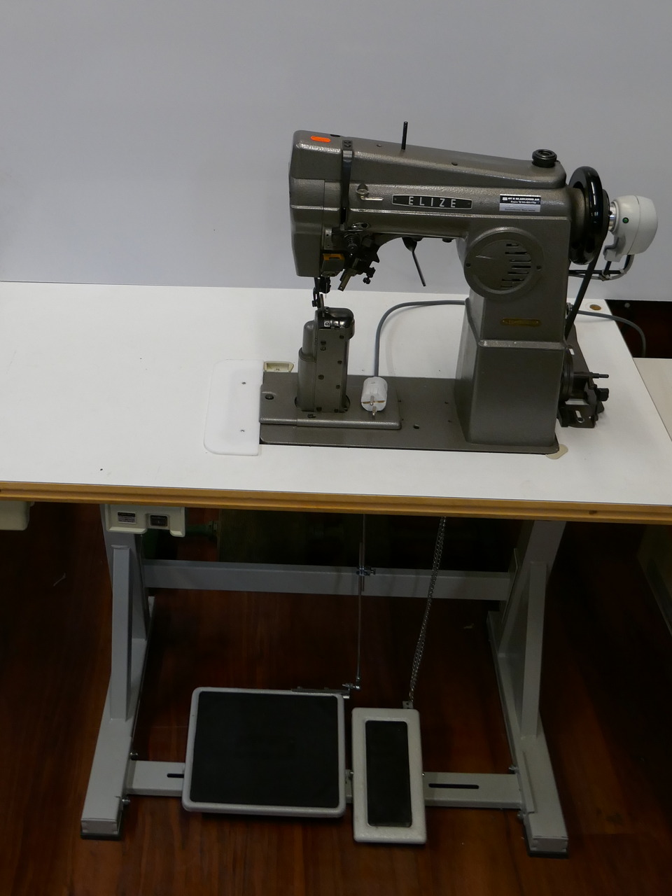 Yksineulainen tolppaompelukone ohkaisella pylväällä. Varustettu peruutuksella, paininjalan nostimella ja rullapaininjalalla, sekä Ho Hsing 600W servomoottorilla.