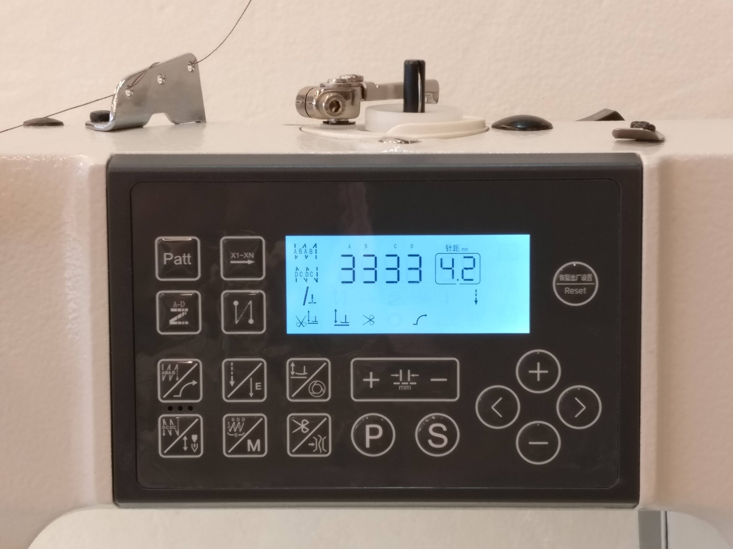 GC298-2H = Medium industrial sewing machine with direct drive servo motor, BIG bobbin, electronic needle position control, automatic thread trimmer, automatic back-tacking, control panel, automatic foot lifter, neat start snap device and LED needle light.