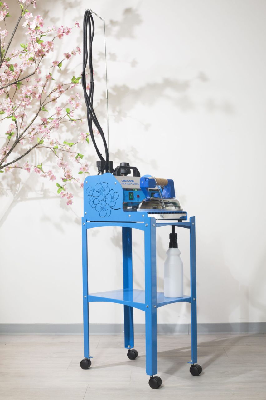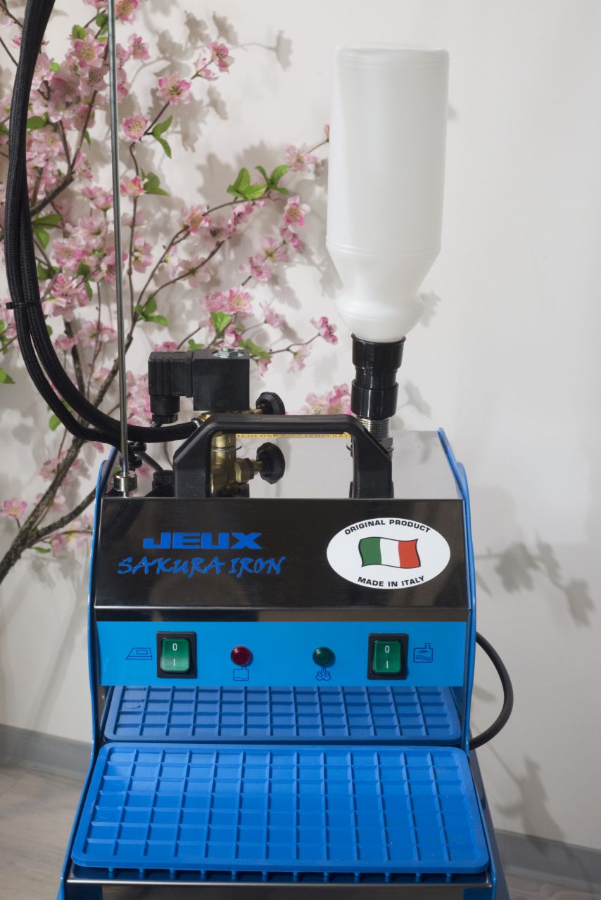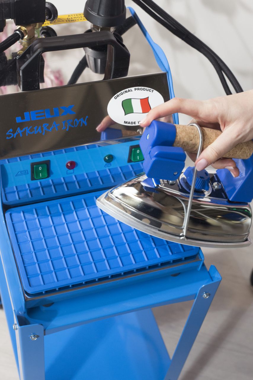 Jeux Sakura Kehittimessä on 2,2 litran vesisäiliö, teollinen erikoisergonominen silitysrauta, teflonpohja ja kuminen lämmönkestävä alusta, pjalusta pyörillä sekä täyttöpullo.