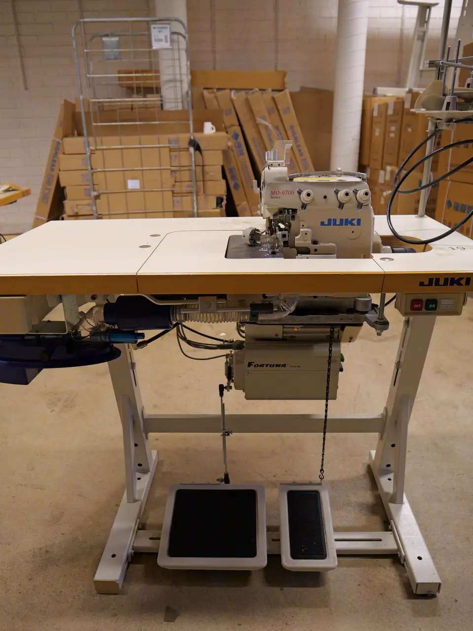 3-thread overlock. Suitable for use in the manufacture of many types of clothing / textiles and is able to form a uniform stitch, resulting in top quality seams.