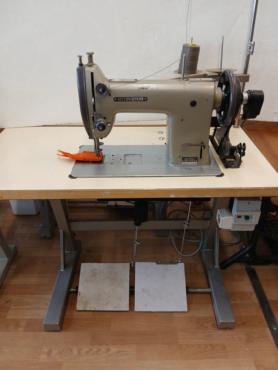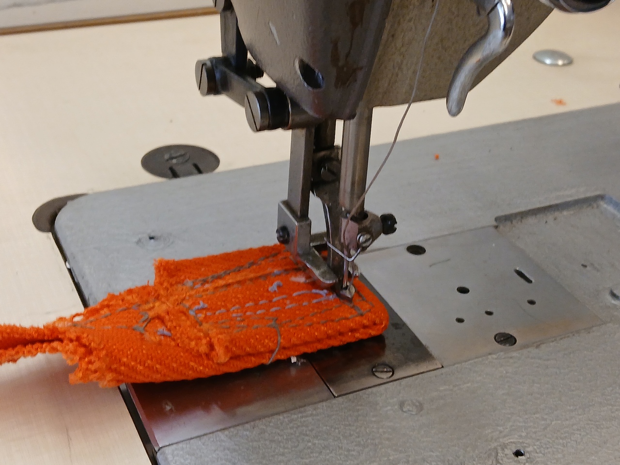 Harness machine with top & bottom feed industrial machine for heavy fabric.
