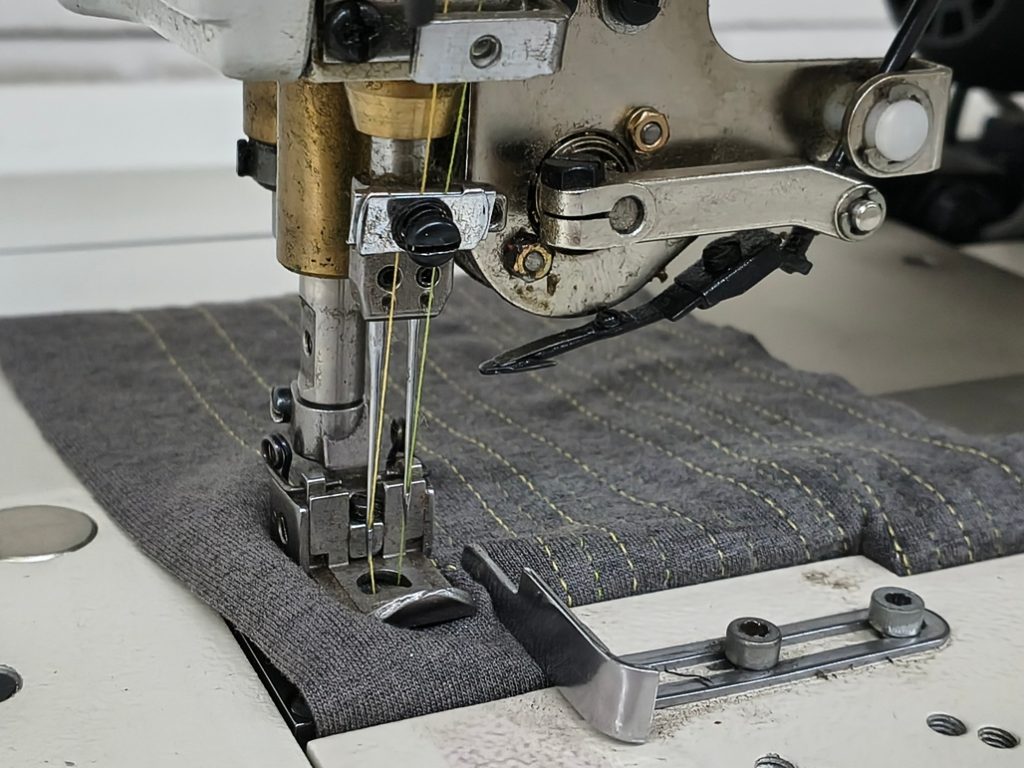 The primary function of a coverlock machine is to create coverstitching, which is commonly used in the apparel industry to finish the hems of T-shirts, knitwear, and other stretchy fabrics.
