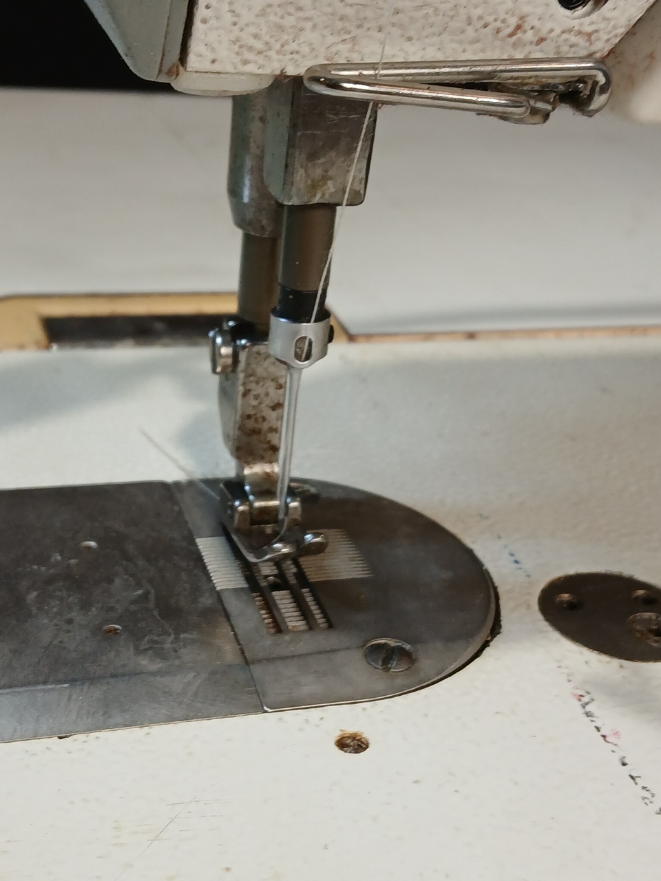 Needle feed sewing machine with 230V operation voltage, thread cutting, control panel and thread fix.