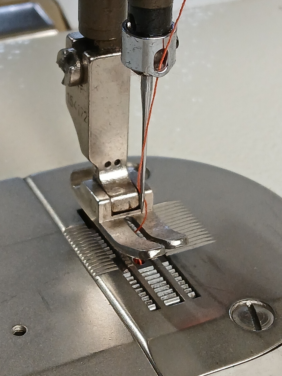 Needle feed sewing machine with 230V operation voltage, thread cutting and thread fix.