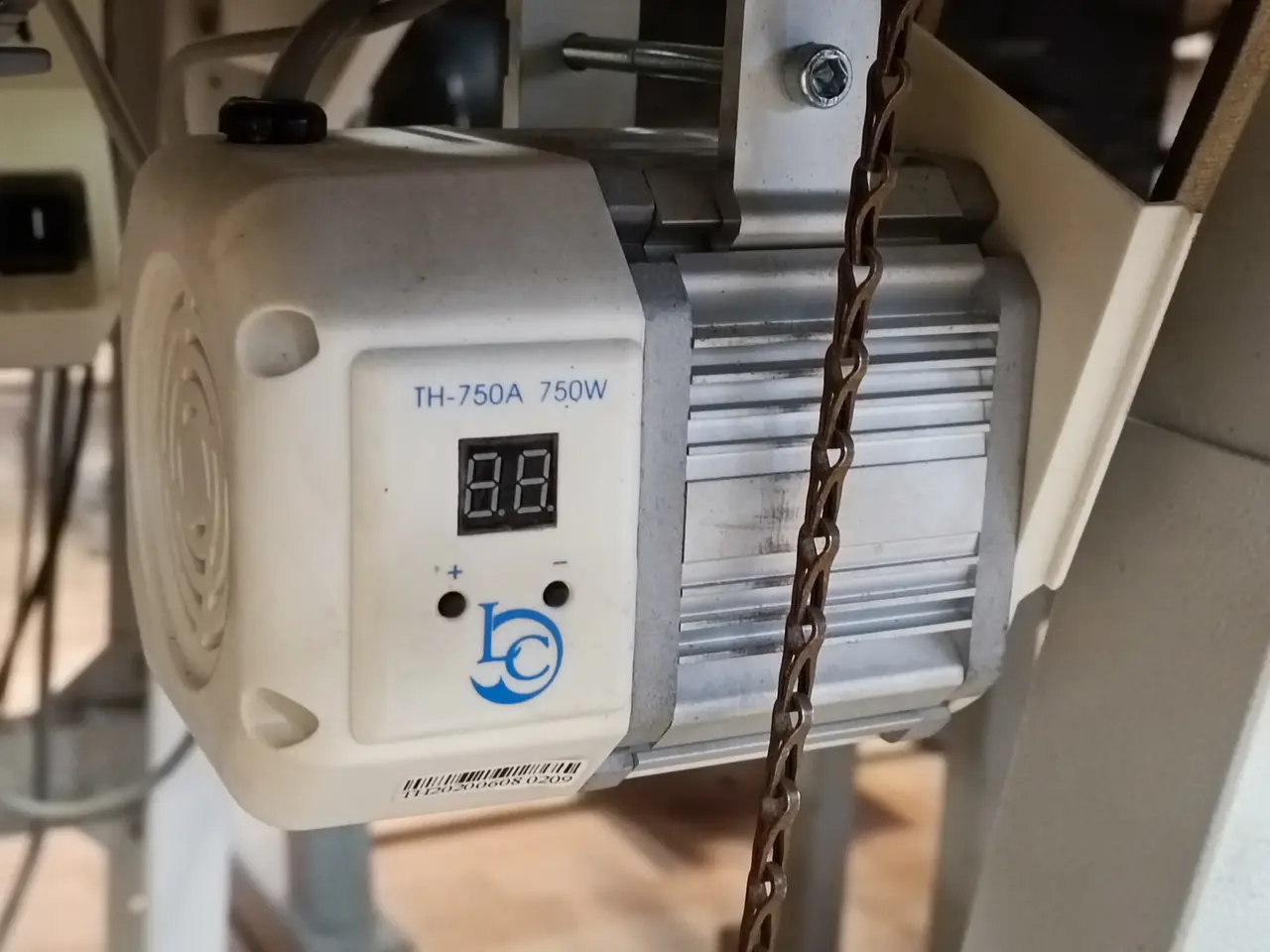 Compound feed sewing machine with new servo motor for sewing thick or difficult-to-handle materials.