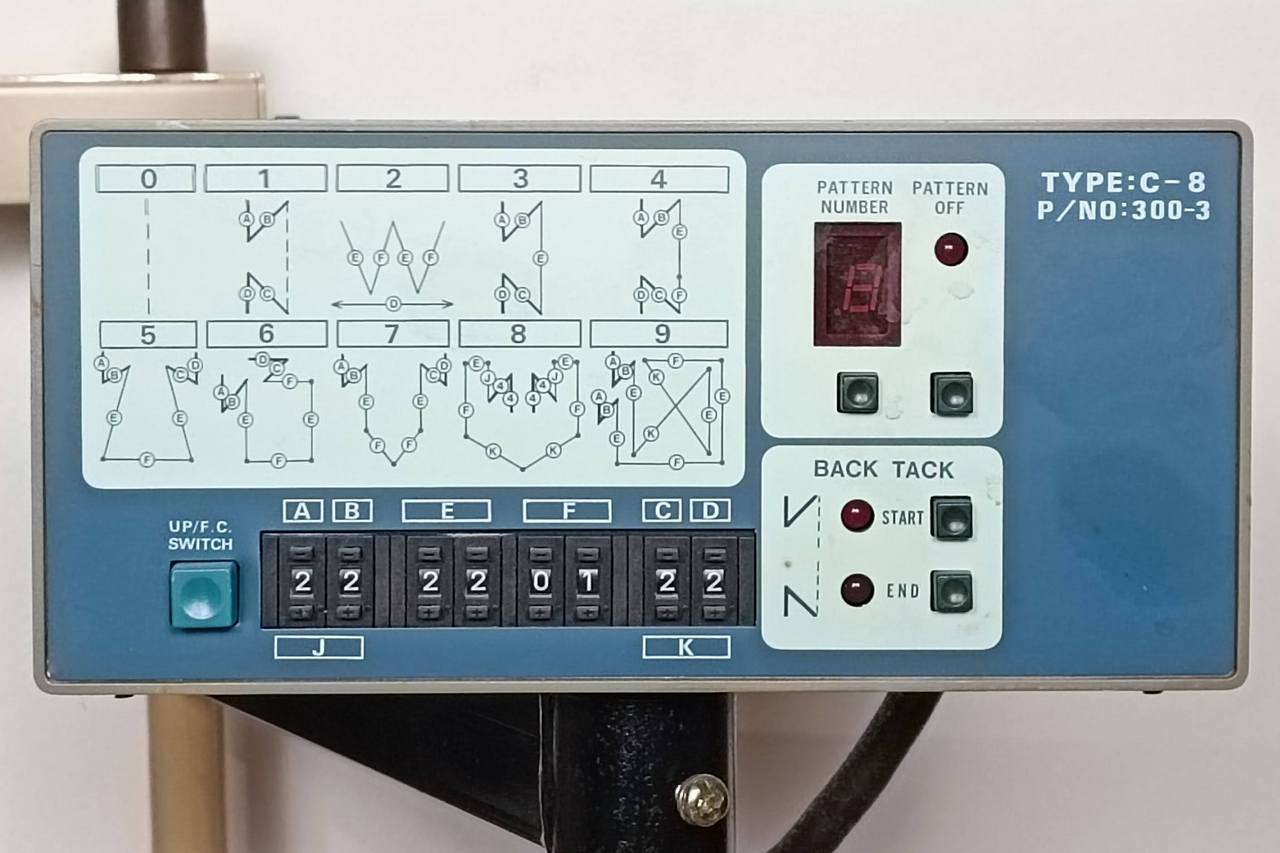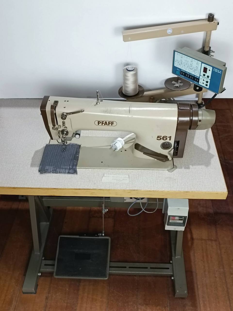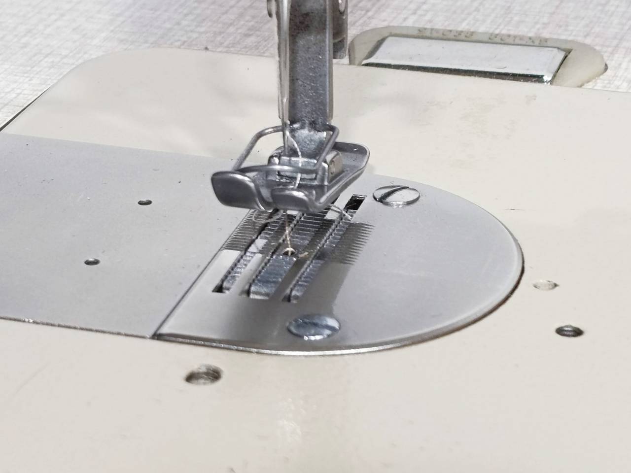 Needle feed sewing machine with single phase 230V operating voltage, thread trim, cutting and backtacking.