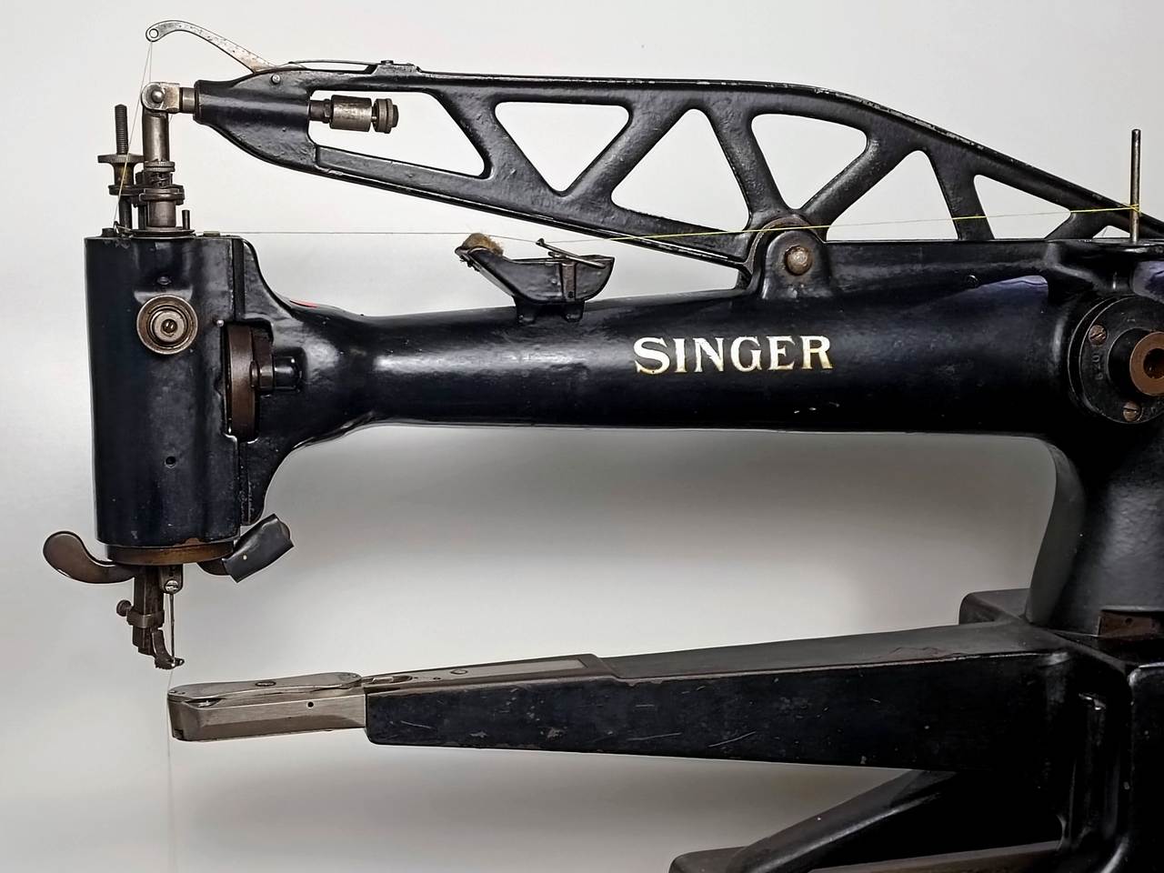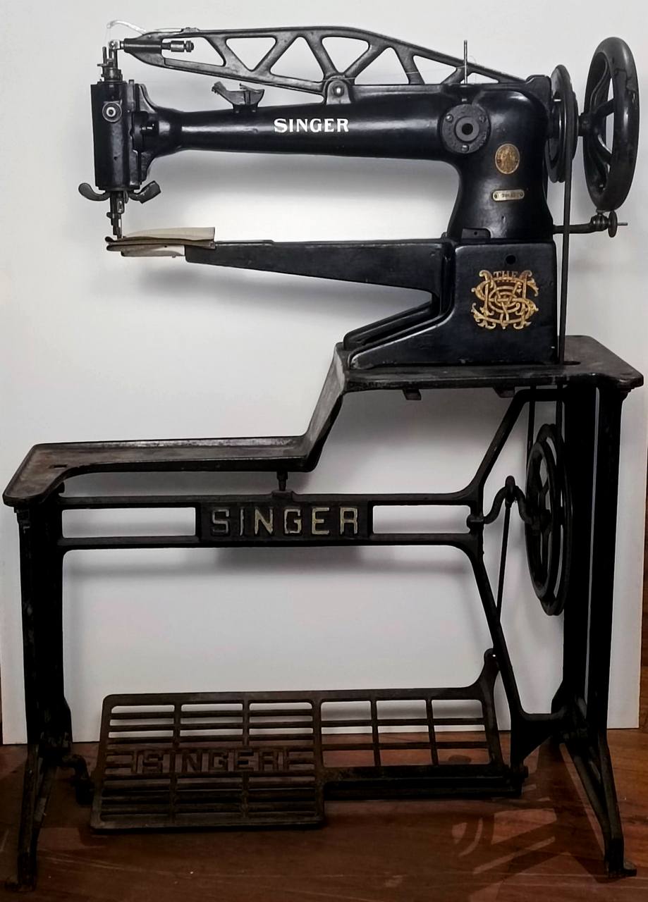 Shoemaker machine with long free arm for sewing shoes and other leather garments.